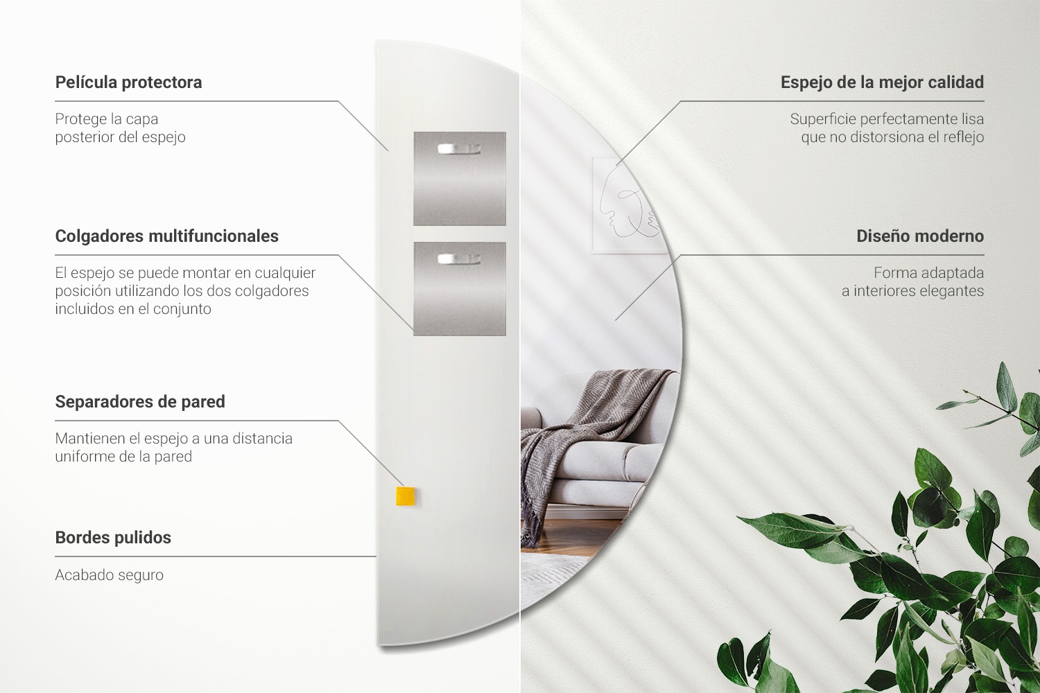 Descubre la elegancia minimalista con nuestro espejo semicircular de forma moderna, diseñado para transformar cualquier espacio en un rincón sofisticado y luminoso. Con su forma de media luna y acabado sin marco, este espejo no solo refleja, sino que también decora con carácter.